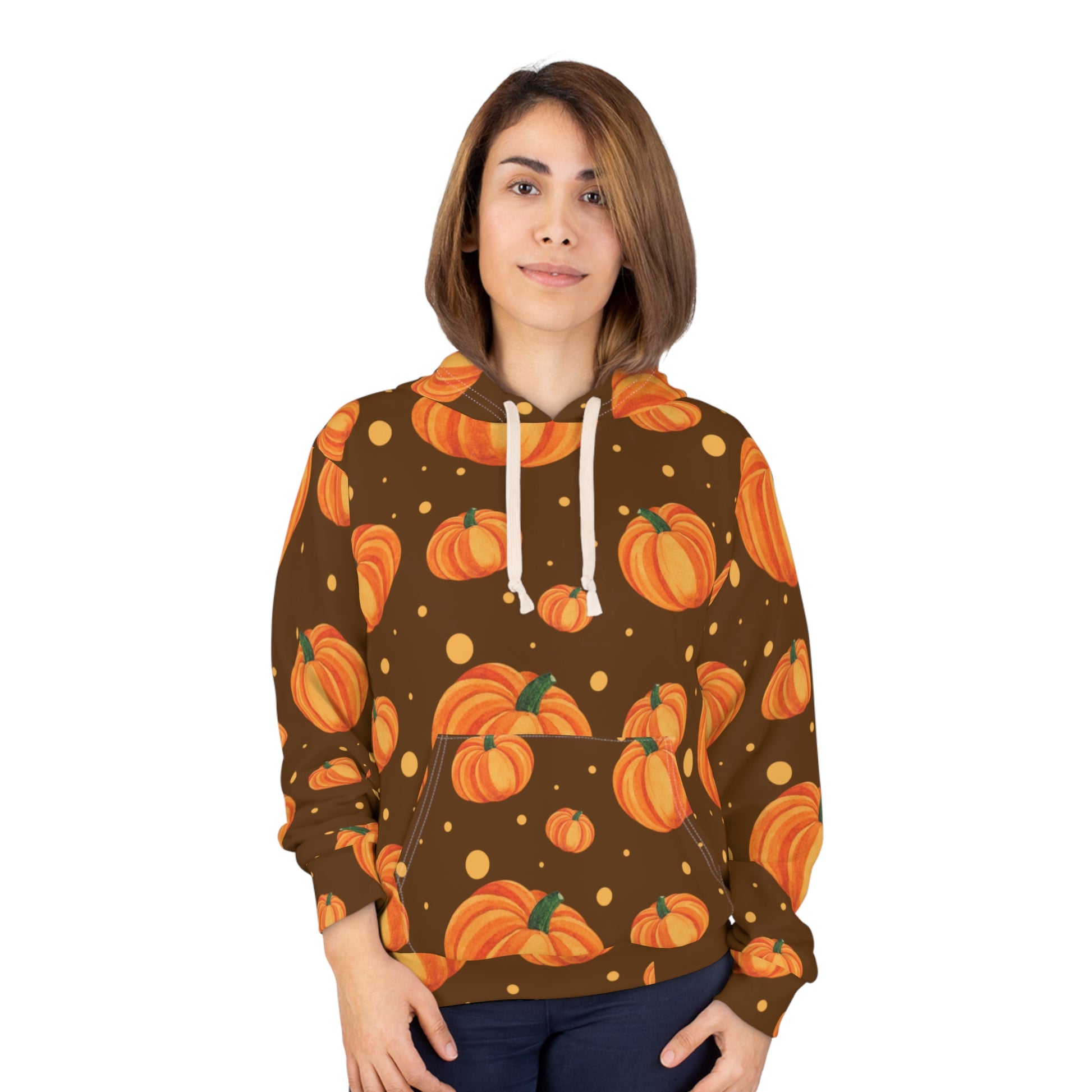 This Unisex Pullover Hoodie brings warmth and style together, featuring a vibrant pumpkin design perfect for fall. The all-over print bursts with bright colors, evoking a cozy autumn vibe that adds a festive touch to any wardrobe. Ideal for casual outings or relaxing at home, this hoodie suits anyone looking to elevate their seasonal style. It's perfect for celebrations like Halloween, Thanksgiving, or cozy gatherings with friends and family. Experience comfort wrapped in creativity as you stay snug and stylish!
