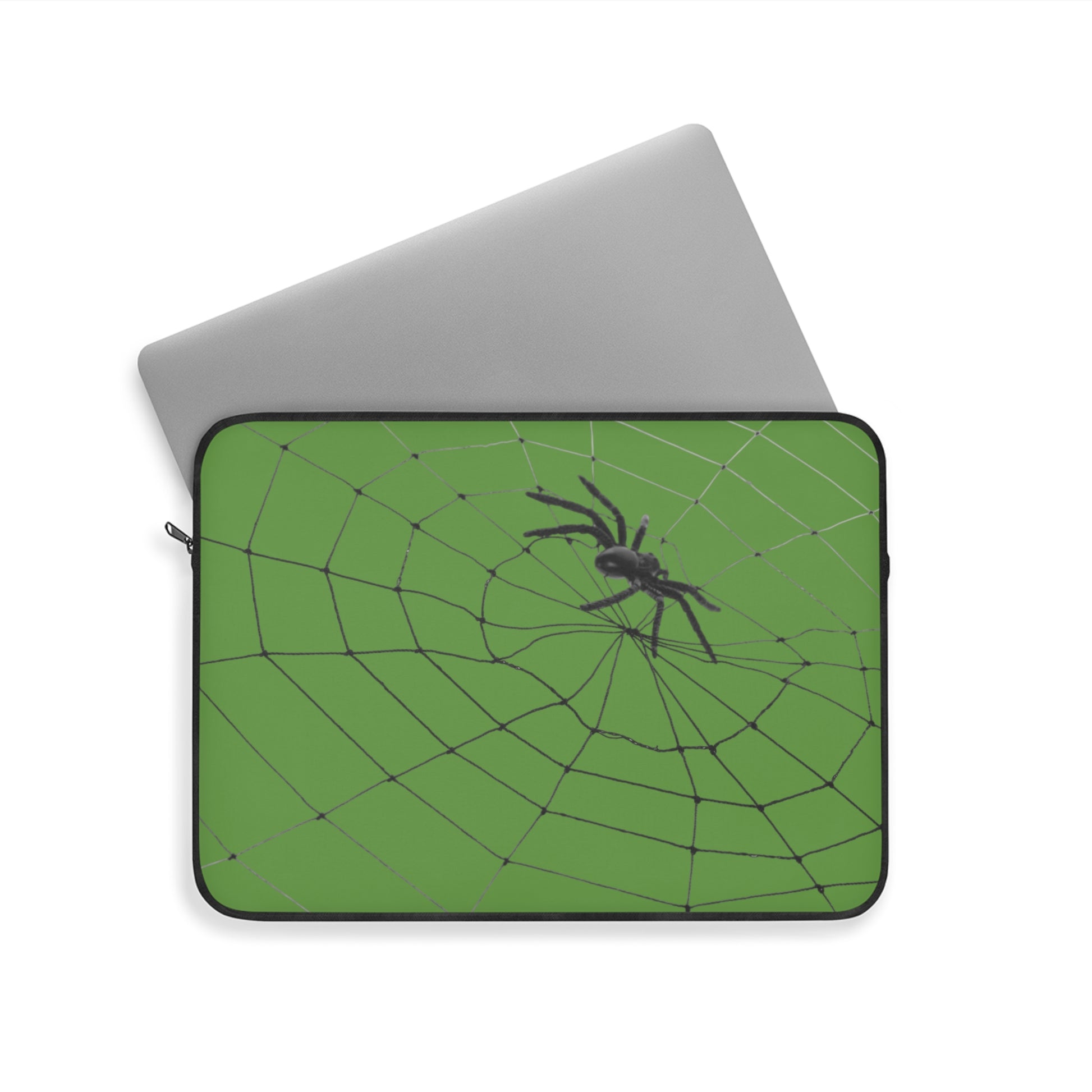 Spider in Web on Green Laptop Sleeve | Unique Laptop Case for Teens, Gift for Artists, Computer Sleeve, Geeky Tech Accessories
